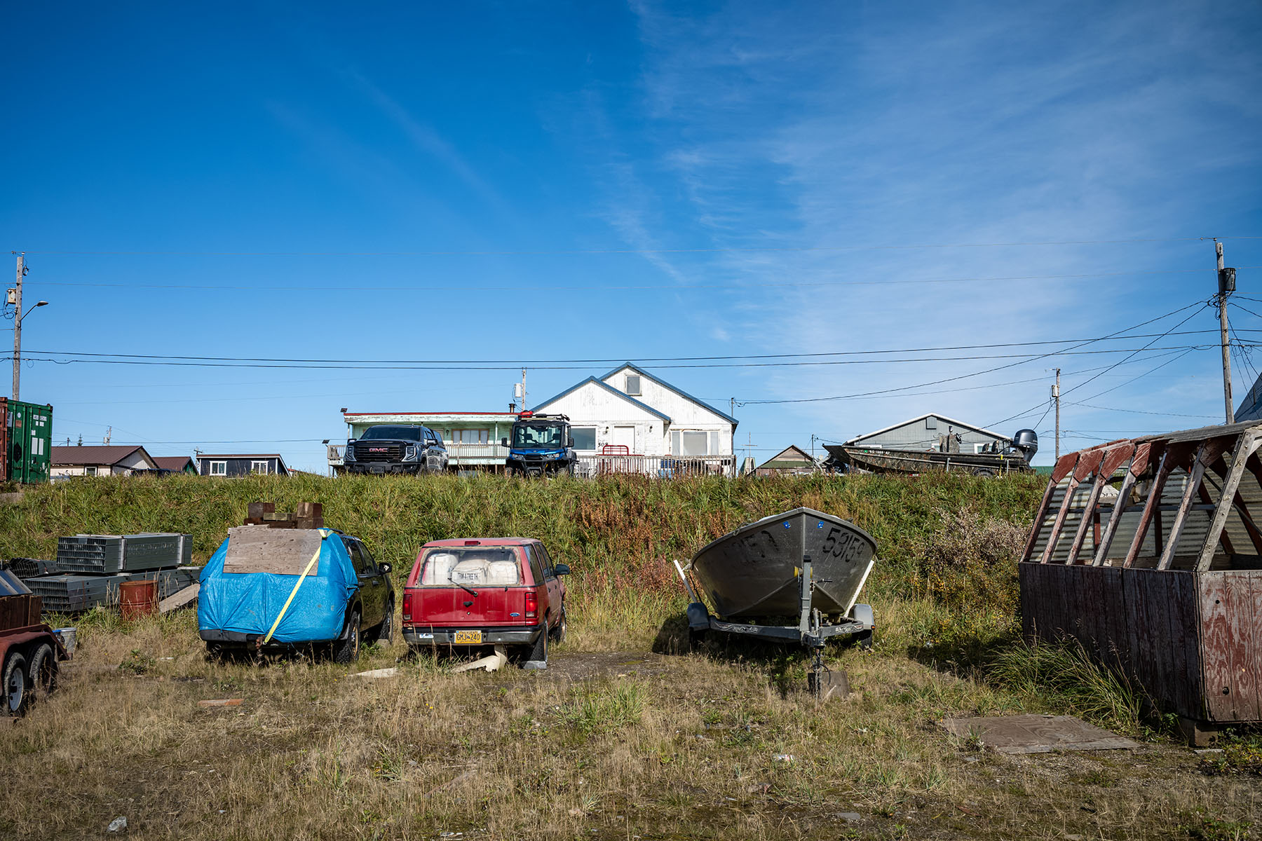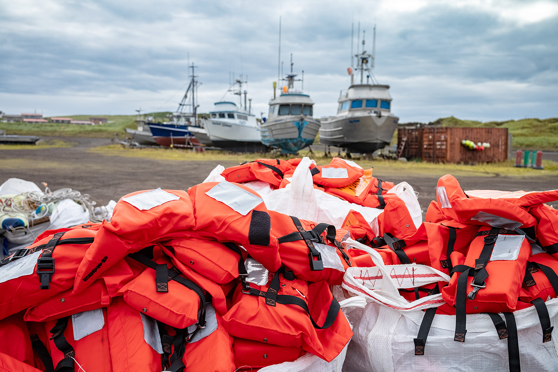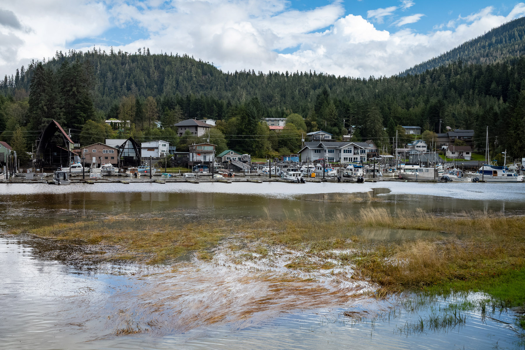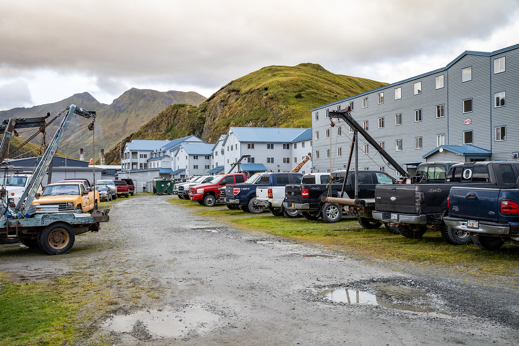 Heute Vormittag haben wir den Shuttleservice genommen bis zum Museum. Stadt kann man ja eigentlich gar nicht sagen. Viel Hafen, viele hauptsächlich rostende Container, Bootüberreste und sonstige Vehikel. Es gibt: 2 große Supermärkte, ein großes Hotel, eine Bank, ein Museum, asphaltierte Straßen, eine Tankstelle, ein Krankenhaus, ein Hallenbad in der Schule. Also eh alles da, aber sehr verstreut und dazwischen ist halt Gstetten, wie man bei uns sagt. Die Häuser sind alle aus Holz, schauen recht manierlich aus. Richtig leben kann die Bevölkerung von den Kreuzfahrttouristen sicher nicht. Im Kaffeehaus kehrt man nicht ein, weil man am Schiff ja alles bekommt. Der Eintritt ins Museum ist mit Cruise-Card (die wir Tag und Nacht umgehängt haben 😂) kostenlos. Sie könnten das wahrscheinlich auch gar nicht kontrollieren. Aber manche Leute kaufen doch was im Souveniershop. Womit die Gemeinde jedoch Geld verdient, ist das „land use permit“. Das muss vom Schiff für alle Passagiere gekauft werden. Das Papier ist am Ausflugsschalter ausgehängt und wir wurden angehalten, ein Foto zu machen zwecks vorweisen, falls man uns auf der Straße danach fragt. Die Wolken wollen nicht so recht aufreißen, es wirkt dadurch alles so grau. Jetzt noch ein paar Worte zur Umwelt. Unser Schiff legt viel Wert auf Umweltschutz, hat auch irgendeinen Hybridantrieb. Wenn man dann hier die Autos anschaut, dann bekommt man den Eindruck, dass die Einwohner von Umwelt und Umweltschutz noch nie was gehört haben. Man sollte ein paar Klimakleber herschicken. Und vielleicht auch ein paar Naturschützer wegen dem Krabbenfang. Hier sind tausende Fangkörbe gelagert, einer fasst 900 Pfund Krabben. Ca. die Hälfte werden wie schon gestern erwähnt wieder ins Meer geworfen. Bleiben immer noch viele Tonnen Krabben übrig.