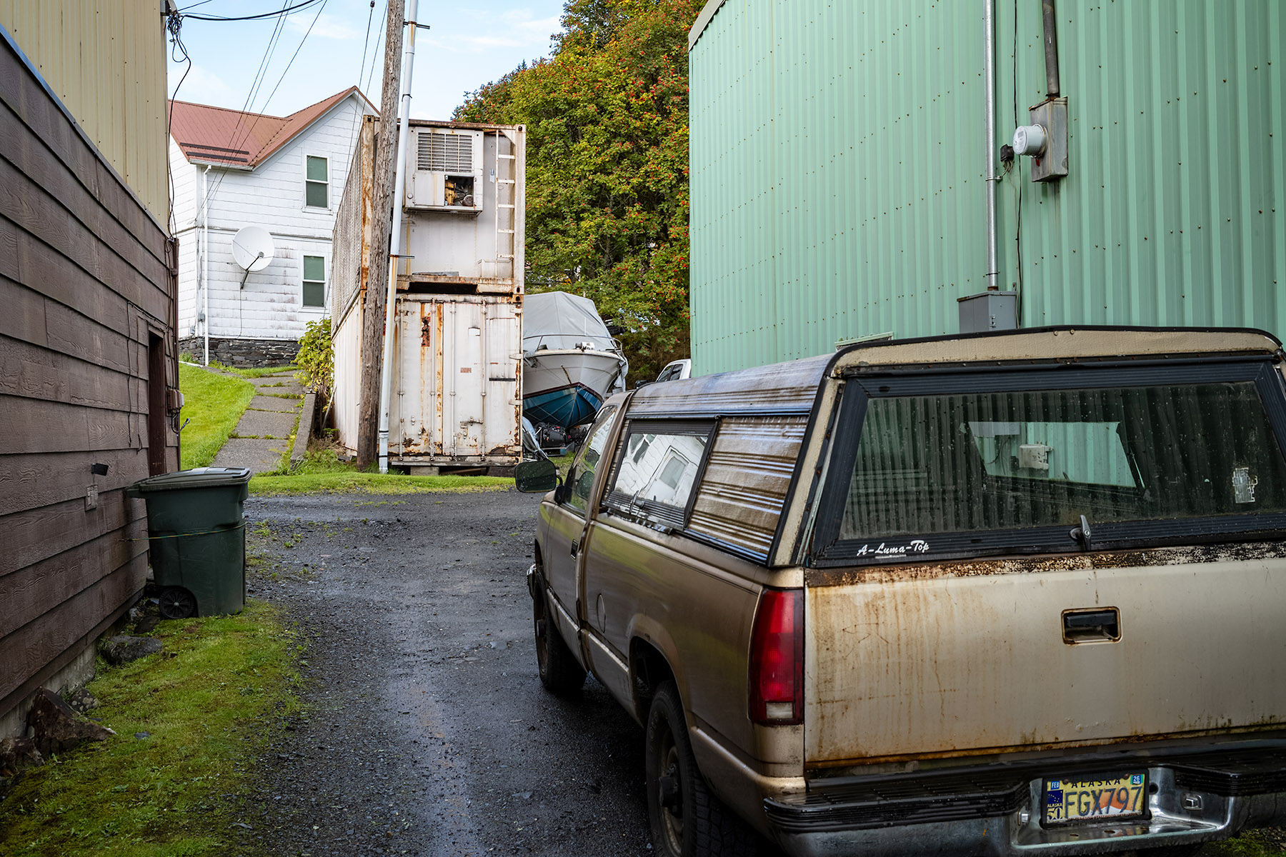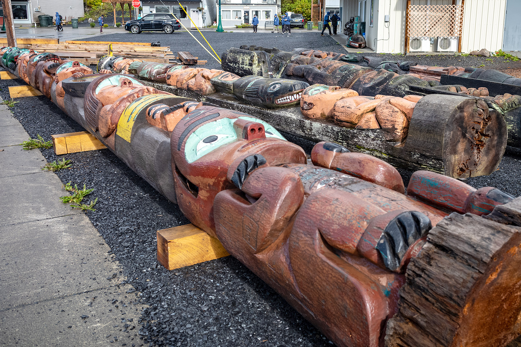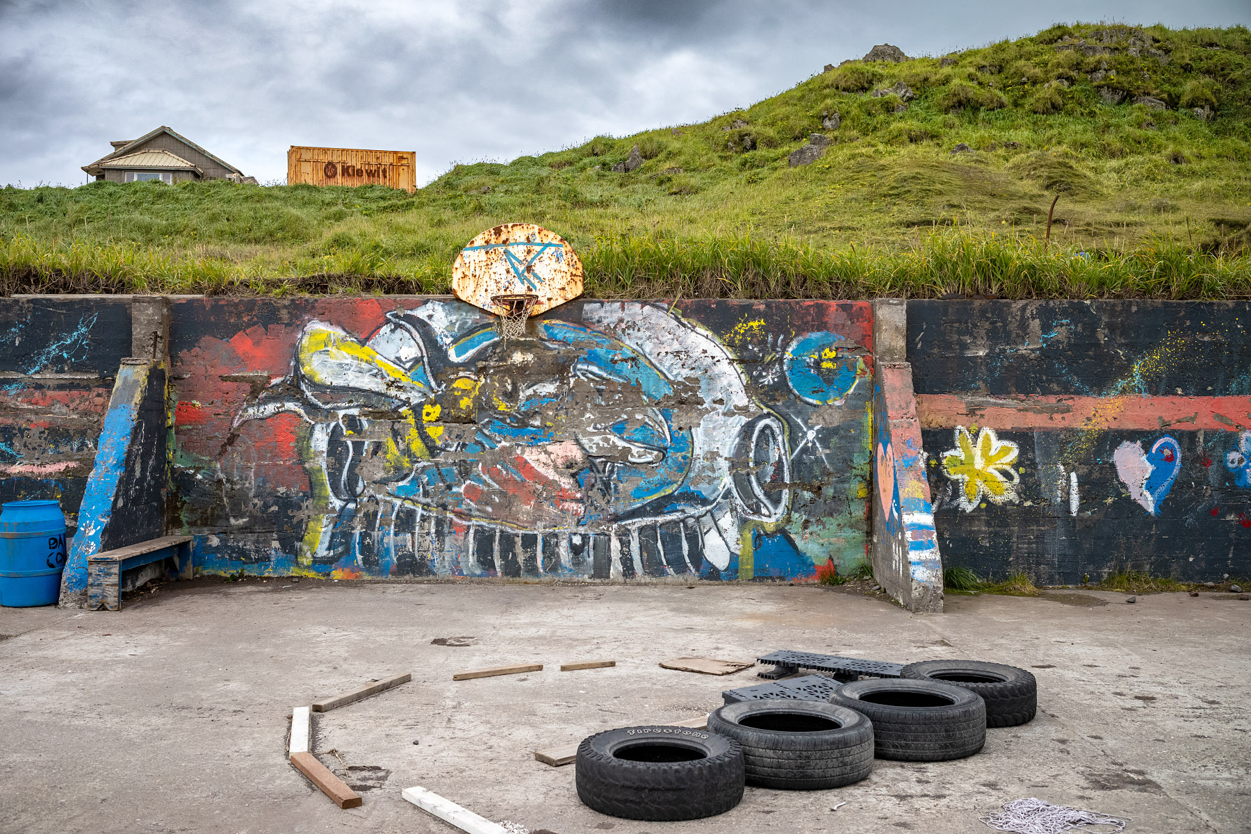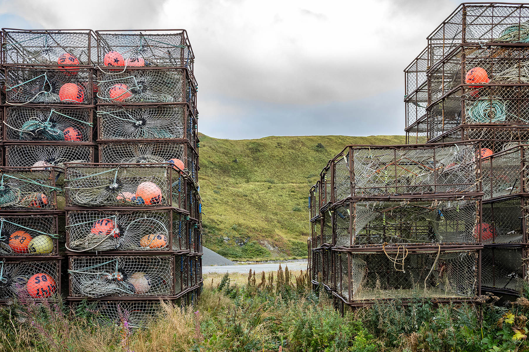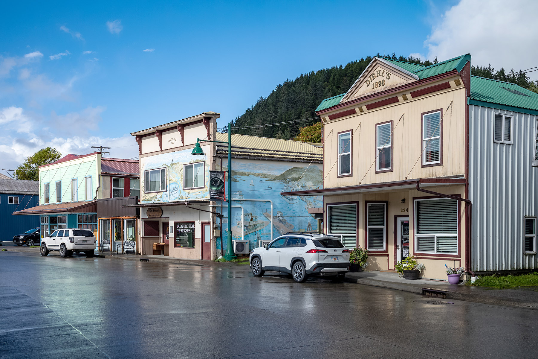 Heute Vormittag haben wir den Shuttleservice genommen bis zum Museum. Stadt kann man ja eigentlich gar nicht sagen. Viel Hafen, viele hauptsächlich rostende Container, Bootüberreste und sonstige Vehikel. Es gibt: 2 große Supermärkte, ein großes Hotel, eine Bank, ein Museum, asphaltierte Straßen, eine Tankstelle, ein Krankenhaus, ein Hallenbad in der Schule. Also eh alles da, aber sehr verstreut und dazwischen ist halt Gstetten, wie man bei uns sagt. Die Häuser sind alle aus Holz, schauen recht manierlich aus. Richtig leben kann die Bevölkerung von den Kreuzfahrttouristen sicher nicht. Im Kaffeehaus kehrt man nicht ein, weil man am Schiff ja alles bekommt. Der Eintritt ins Museum ist mit Cruise-Card (die wir Tag und Nacht umgehängt haben 😂) kostenlos. Sie könnten das wahrscheinlich auch gar nicht kontrollieren. Aber manche Leute kaufen doch was im Souveniershop. Womit die Gemeinde jedoch Geld verdient, ist das „land use permit“. Das muss vom Schiff für alle Passagiere gekauft werden. Das Papier ist am Ausflugsschalter ausgehängt und wir wurden angehalten, ein Foto zu machen zwecks vorweisen, falls man uns auf der Straße danach fragt. Die Wolken wollen nicht so recht aufreißen, es wirkt dadurch alles so grau. Jetzt noch ein paar Worte zur Umwelt. Unser Schiff legt viel Wert auf Umweltschutz, hat auch irgendeinen Hybridantrieb. Wenn man dann hier die Autos anschaut, dann bekommt man den Eindruck, dass die Einwohner von Umwelt und Umweltschutz noch nie was gehört haben. Man sollte ein paar Klimakleber herschicken. Und vielleicht auch ein paar Naturschützer wegen dem Krabbenfang. Hier sind tausende Fangkörbe gelagert, einer fasst 900 Pfund Krabben. Ca. die Hälfte werden wie schon gestern erwähnt wieder ins Meer geworfen. Bleiben immer noch viele Tonnen Krabben übrig.