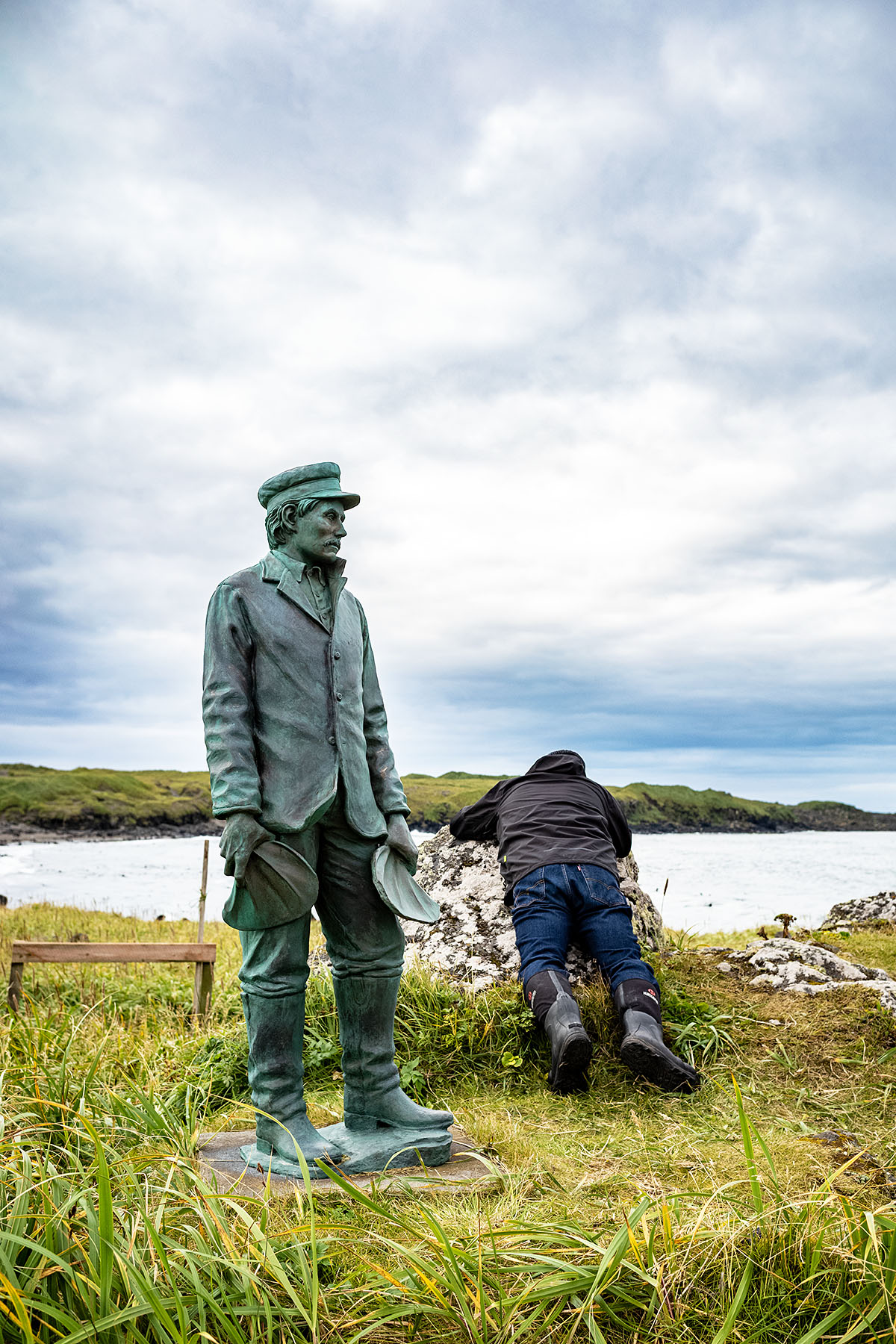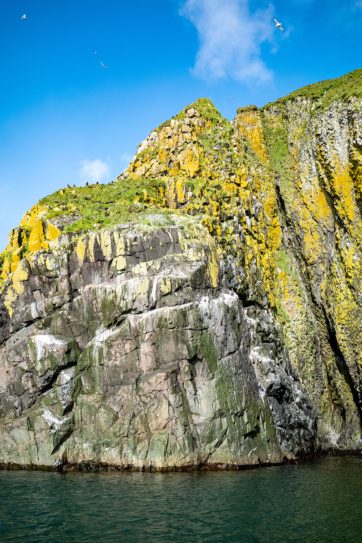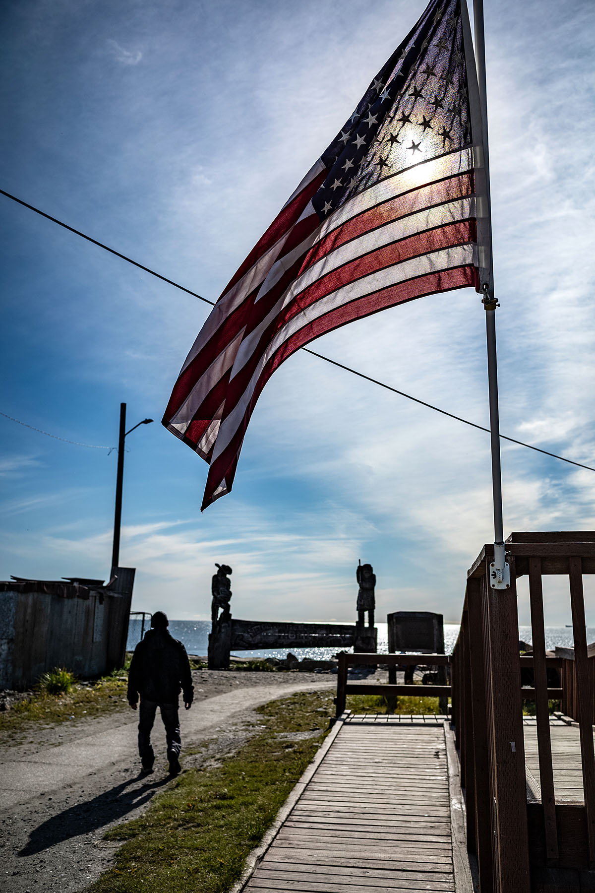 Verbesserung zu gestern: die Kormorane sind Lummen. Heute gab es einen Ausflug zur St.Paul Island, eine der Pribilof-Inseln. Heute sind wir trocken per Schlauchboot in einem Hafen angelandet (der Hafen ist für so große Schiffe natürlich zu klein, die müssen außerhalb „parken“). Die Gummistiefel waren trotzdem Pflicht, weil man auf dieser Insel keine Samen oder Steinchen oder Sonstiges mit den Schuhen oder der Überbekleidung einschleppen darf. Also dann halt wieder die Stiefel. Im Ort leben heute 400 sogenannte Aleuten, die irgendwie von den Russen abstammen. Alaska und diese Inselgruppe der Aleuten gehörten ja bis 1867 zu Russland, die das Land wegen Geldmangel an die USA verkauft haben. Es gibt eine geschlossene Kirche, weil sie keinen Pfarrer finden. Ein geöffnetes Museum mit kleinem Shop, einen Supermarkt, eine Post, eine Schule, ein Rathaus und 1,2 Millionen Robben. Die begrüßen einen schon bei der Hafeneinfahrt. Heute hatten wir leider keine Sonne, es war nur bewölkt, daher wirkt alles ein bissl trostlos. Aber die Häuser sind oftmals recht bunt, die Straßen leider nicht asphaltiert – Gottseidank hats nicht geregnet. Bäume gibt es natürlich wieder keine, aber viel Wiese. Wenn man jetzt rechnet, dass von den 400 Bewohnern vielleicht 150 Kinder sind, bleiben 250 Erwachsene, das ergibt ca. geschätzte 150 Autos und ebenso 150 Boote. Da sind aber Rostschüsseln nicht mitgezählt. Wir durften uns nur in einem abgesteckten Bereich bewegen, die Bewohner haben es nicht so gerne, wenn ihre Siedlung quasi geflutet wird, obwohl uns alle recht freundlich gegrüßt haben, die Kinder hatten auch gerade Schulschluss und haben uns zugewunken. Die Hauptattraktion ist eine Bronze-Statue, die einen Robbenjäger zeigt. Und von dort hat man einen großartigen Blick über die Bucht mit den 1 Millionen Robben (die restlichen 200.000 sind bei der Hafeneinfahrt 😉). Es war ein guter Ausflug, ein schöner Spaziergang. Kurz noch zu meinem Ärgernis des Tages: es gibt egoistische Mitreisende, die minutenlang die Bronzestatue okkupieren, umarmen, sich wie an einen Baum anlehnen, damit sie ihr Objektiv für Fotos auflegen können. Weil für ein Stativ hat das Hirn ja nicht gereicht. 27 andere Landgänger wollen aber auch ein Foto von der Statue machen, mit den Robben im Hintergrund. Bei manchen Leuten fehlen einem einfach die Worte. Und in diesem Fall war es nicht ein überheblicher Ami sondern ein Germane. Ansonsten war es wieder ein guter Tag.