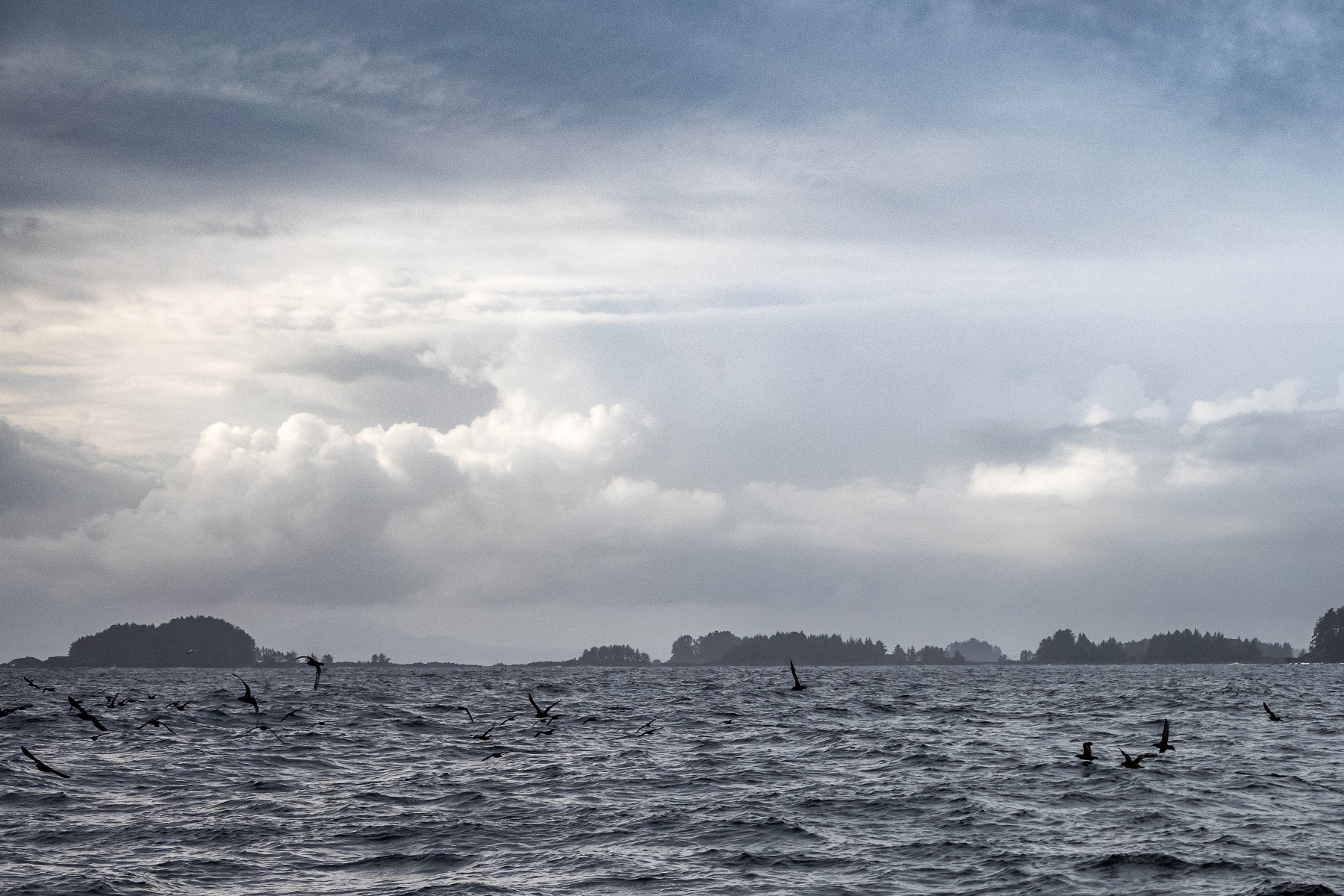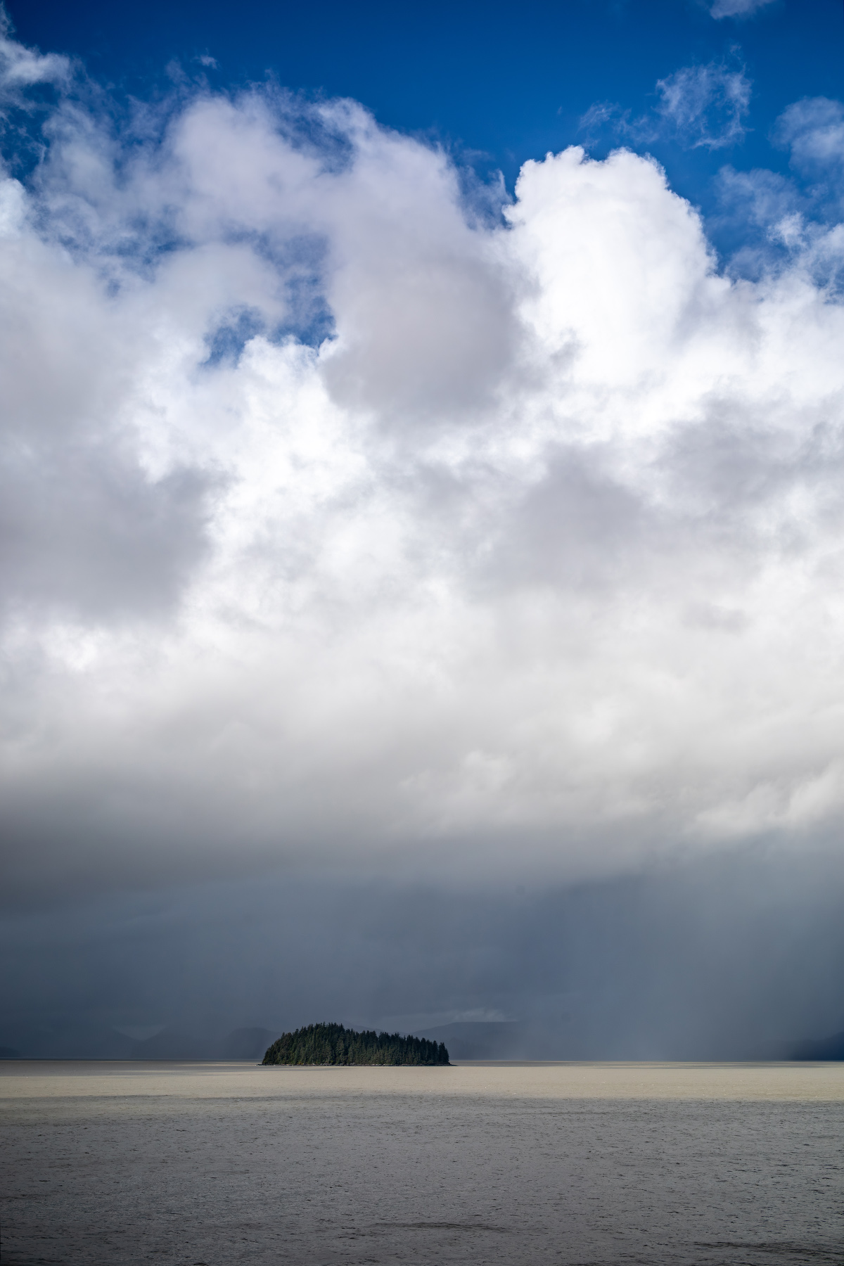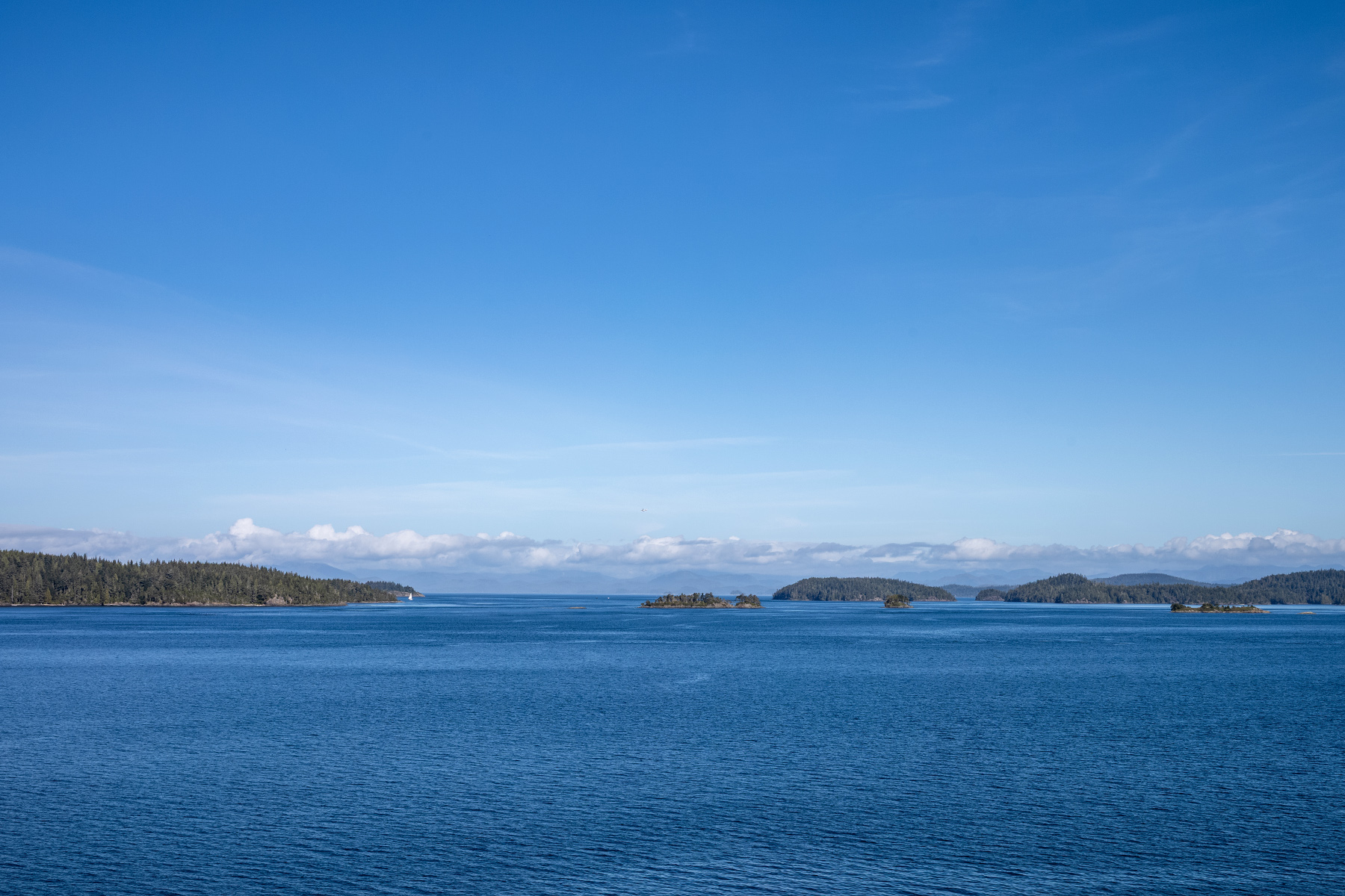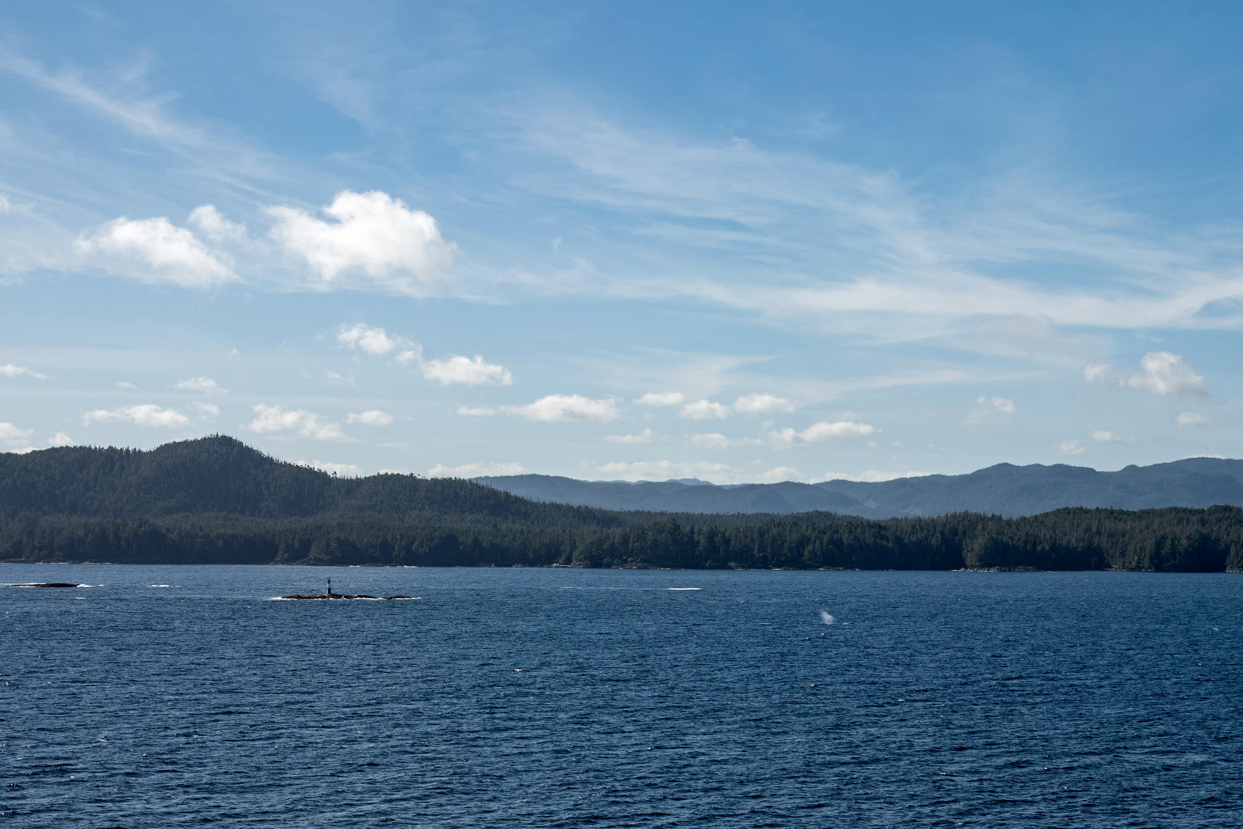 Zu High Noon hat sich auch der Nebel gelichtet und es ist draußen angenehm warm. Eine Walsichtung. Die richtige Engstelle zwischen Festland und Vancouver Island kommt gegen Abend. Aber es paßt auch jetzt schon so wie es ist. Auf jeden Fall sind wir in einer zivilisierten Umgebung. Das merkt man am Telefonempfang und an den schmucken Häusern in den kleinen Ortschaften auf den hunderten kleinen Inseln zwischen dem Festland und der großen Insel Vancouver Island.