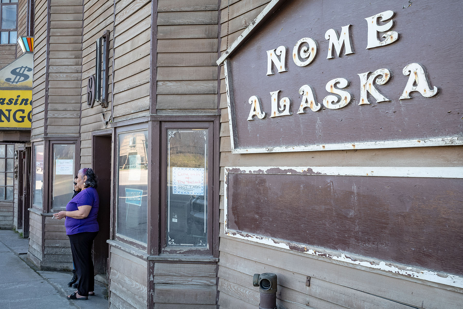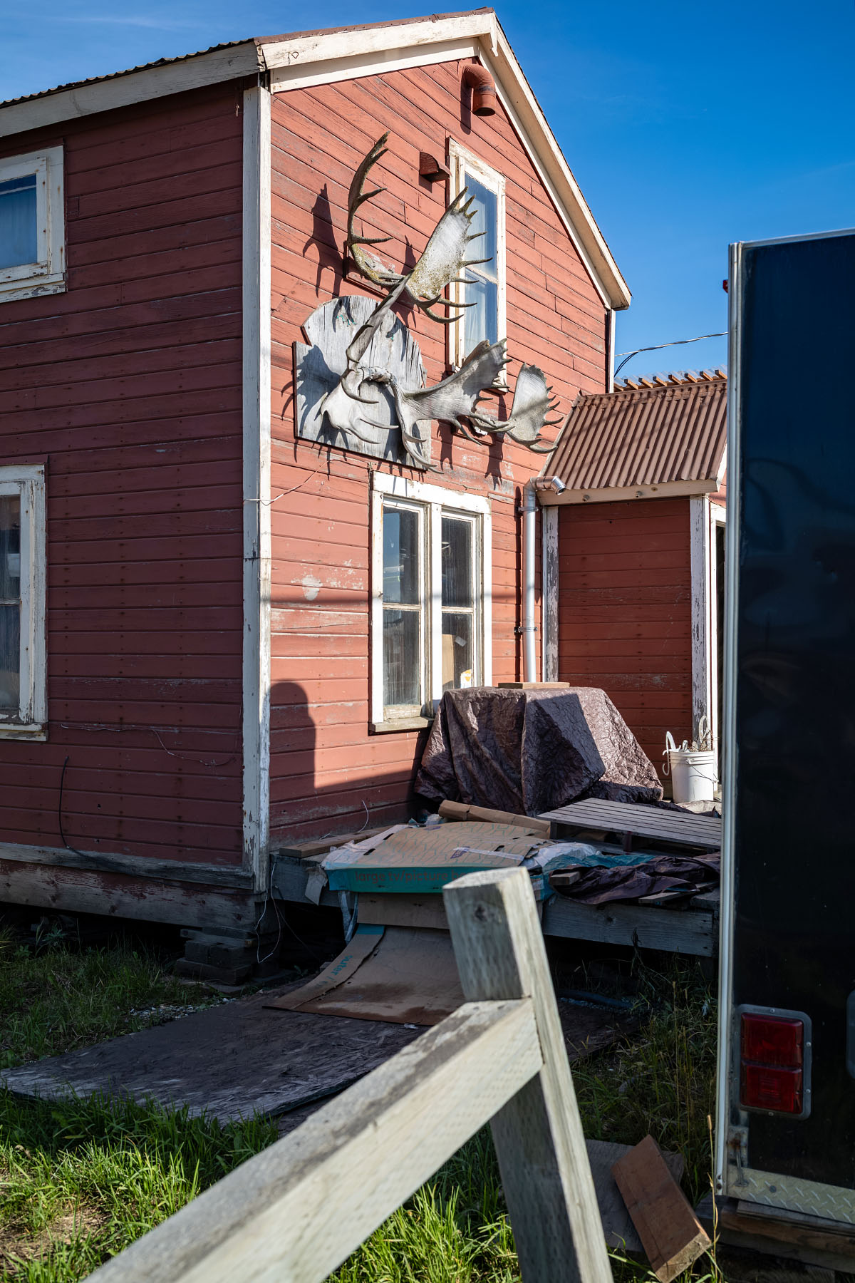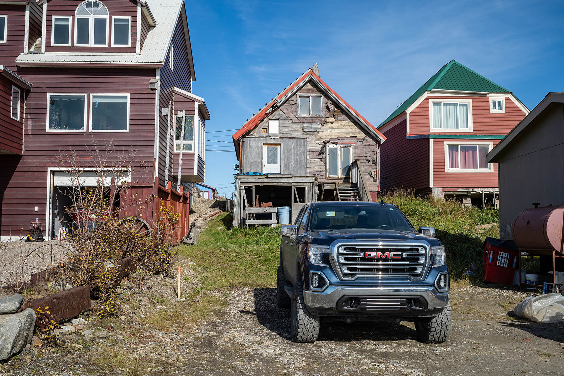 Mittlerweile ist es 20:45, wir fahren und schwanken ein bißl, haben zu Abend gegessen und uns in der Kabine häuslich eingerichtet. Vom Flughafen wurden wir in alten Schulbussen zum Schiff gebracht, die Koffer separat später, dafür direkt zur Kabine. Das Einchecken war im Nu erledigt und die Pässe sind einbehalten worden. Die Kabine ist groß und gemütlich, mit großem Fenster. Es hätte noch Kabinen mit Balkon gegeben, sogar welche mit eigenem Whirlpool, aber das ist nicht wirklich notwendig. Da bis zur Abfahrt noch Zeit war, sind wir mit einem Shuttlebus in die Ortschaft gefahren. Da muss ich jetzt doch sagen, dass ich hier nicht wohnen wollen würde. Auch der Hafen ist nicht einladend. Die schöne Fridtjof Nansen ankert in einer Baustelle. Nächstes Jahr soll der Hafen angeblich ein Schmuckstück sein. Wir werden es nicht sehen. Zurück zu Nome: die Einheimischen, also die Nativepeople sind freundlich, grüßen und heißen einen willkommen. Manche wollen irgendwelche Andenken verkaufen. Die Häuser sind aus Holz, obwohl es weit und breit keinen Wald gibt. Nur Treibholz am Strand, das vermutlich von Russland über das Meer her getrieben wird. Alles wirkt heruntergekommen und arm. Aber die Autos sind groß. Der Tag war wieder sehr lang. Morgen ist Seetag, wir können ausschlafen. Programmpunkte sind nur: Expeditionsjacken ausfassen und Gummistiefel probieren. Gute Nacht.