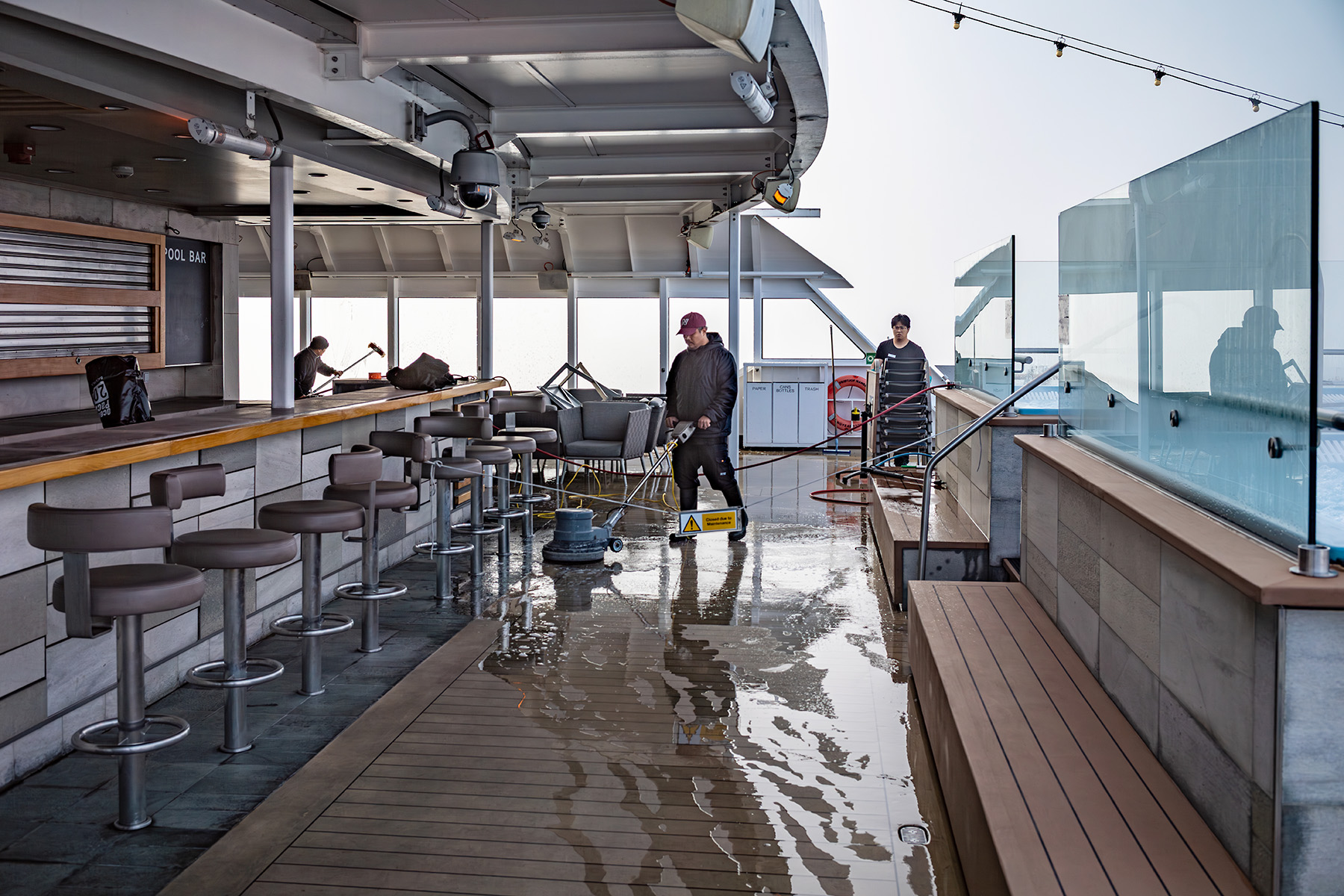 In der Explorer Lounge lauft grad ein Quiz, danach gibt es eine Fotoshow vom Bordfotografen und irgendwann wird der Kapitän noch einige Abschiedsworte sprechen. Vielleicht: es war sehr schön, es hat mich sehr gefreut, aber morgen schauts, dass ihr alle weiterkommt 😂. Weil dann muss das Schiff leer sein, es wird geputzt und Instandsetzungsarbeiten gemacht. Am Pooldeck wurde heute schon geschrubbt. Nach unserer Ankunft in Vancouver wird das Schiff nach Valparaiso fahren und erst dort wieder Passagiere aufnehmen für die Winterreisen im sommerlichen Südamerika.