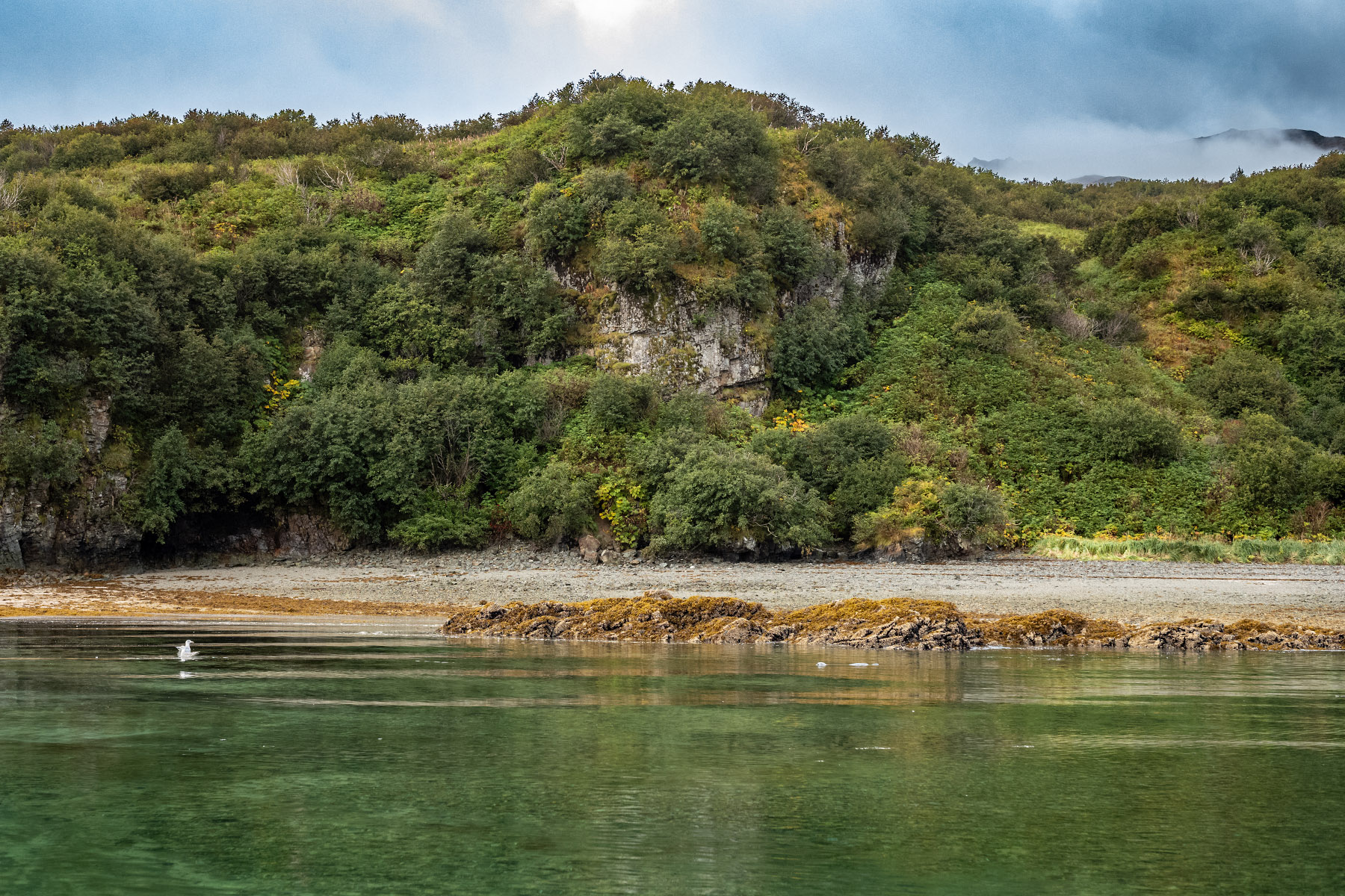 Naja, der Nachmittagsausflug war dann der Besichtigung der „Kathedrale“ gewidmet. Eine russisch orthodoxe Kirche. Recht interessant. Für die Ausflüge waren insgesamt 6 Shuttlebusse (jeder ca. 12 Sitze) eingeteilt. Einer fuhr z.B. vom Schiff bis zum WKII-Memorial, einer von dort zum Museum. Ein Schnellbus fuhr vom Schiff direkt zum Museum. Und von Museum fuhren 2-3 Busse über eine Sightseeing Route zur Kirche. Und genau so ging es in Etappen dann wieder zum Schiff retour. Also Hop on-Hop off. Das hat ganz gut funktioniert. Gestern waren wir noch sehr stolz auf unsere Adlersichtung. Heute war das schon normal. Es gibt hier viele Adler. Und viele Otter in der Bucht. Und jetzt sitzen wir am Aussichtsdeck Nr. 10 und schauen in die Gegend. Es war wieder ein guter Tag.