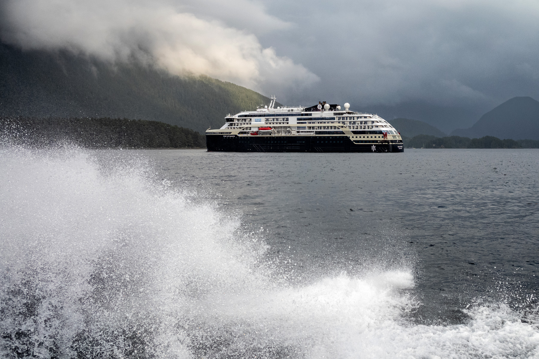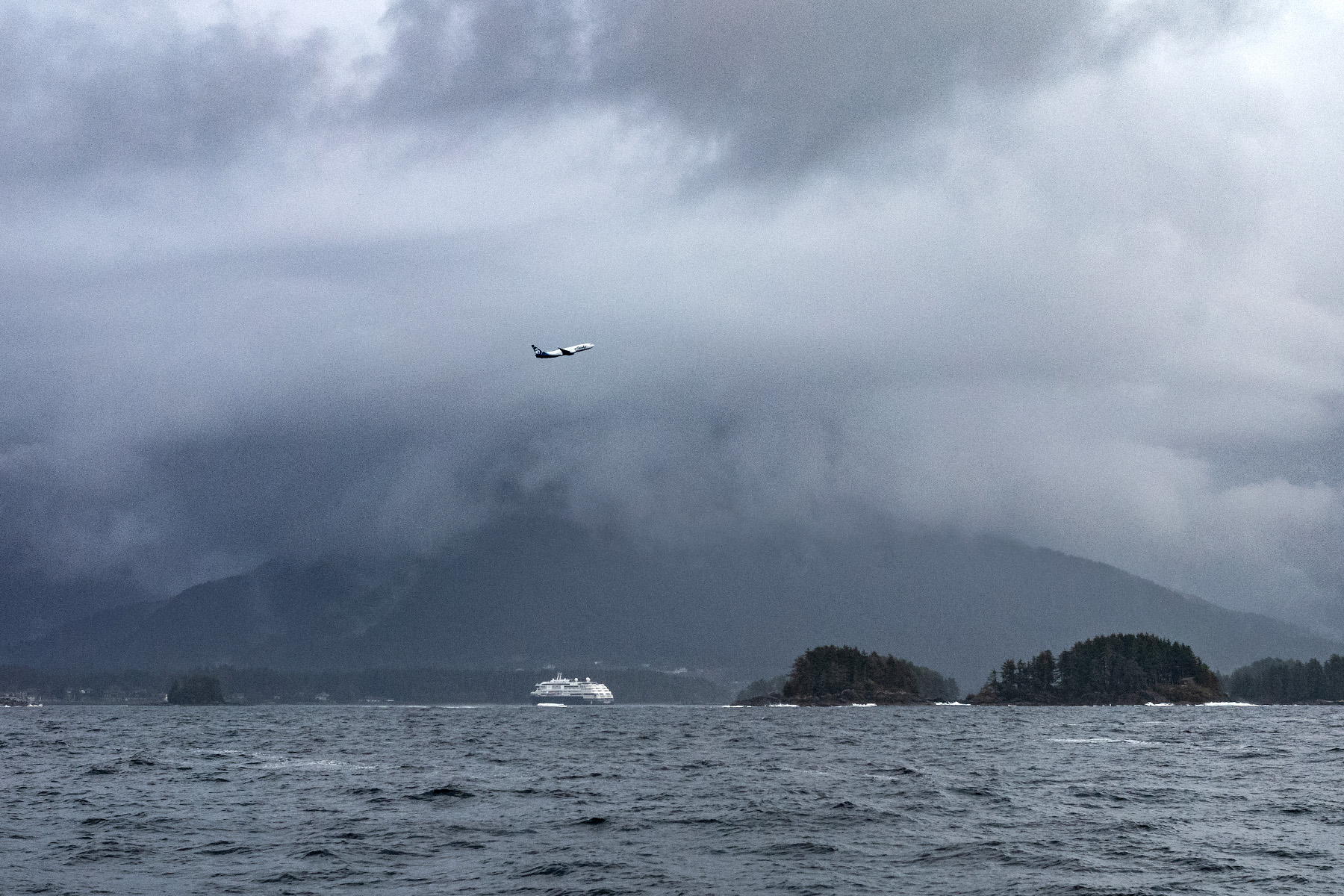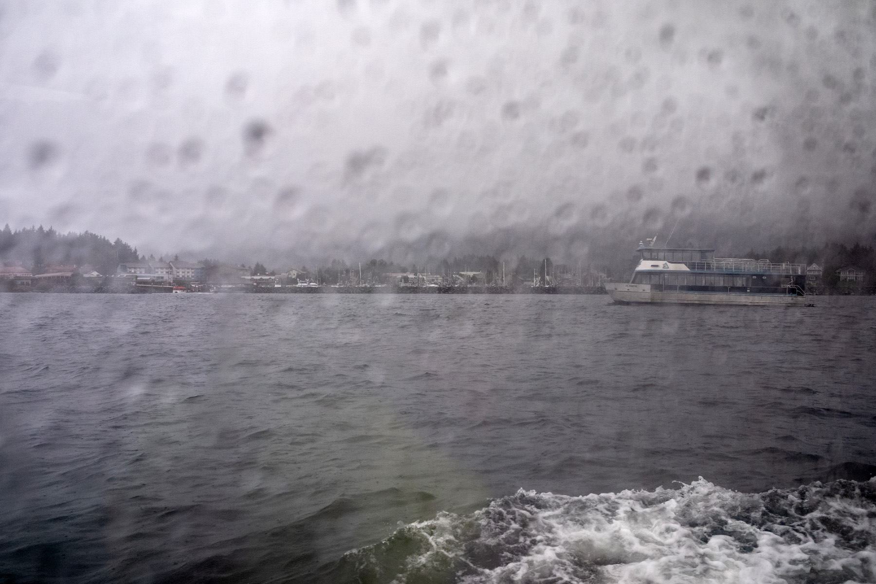 Seit gestern Abend ist es ziemlich zach. Der Wellengang ist sehr „in motion“, es kommen einem lauter Betrunkene entgegen und selber wackelt man genauso herum. Es ist jetzt nicht mehr lustig. Am besten ist liegen und sich vorstellen, dass man in einer Hängematte schwingt. Einfach mitschwingen. Wenn wir dann im Inselwirrwarr vor der Küste drinnen sind, sollte das Meer ruhiger sein, so wie gestern in der Icy Bay. Dafür wird es wieder regnen, das sagen alle Wettermodelle. Das wissenschaftliche Personal an Board besteht aus Amerikanern und Menschen aus aller Herren Länder. Da gibt es z.B. Magnus, einen Fachmann für nordische Geschichte aus Trondheim, Norwegen. Der darf in Sitka von Board gehen und auch an einem Ausflug teilnehmen, er darf aber quasi nicht arbeiten. Wir dürfen den nix fragen, damit er uns nix erklären braucht. Amerika sagt: der Ausländer aus Trondheim darf hier nicht arbeiten. Weil wenns blöd hergeht, bekommt Magnus im besten Fall nie wieder ein Visum für die USA. Die amerikanische Sachverständige für Gletscher, mit der wir gestern im Zodiac unterwegs waren darf natürlich schon. Die Nichtamerikaner dürfen uns aber zumindest noch aus den Tenderbooten helfen und zeigen, wo wir hingehen müssen. Weil das entspricht ja quasi nicht ihrer eigentlichen Arbeit als, wie bei Magnus, Geschichtsexperte. Ja, genau. Noch zum heutigen Wetter: in der Früh blauer Himmel, im Laufe des Vormittag Eintrübung und pünktlich 30 Minuten vor Erreichen des Tageszieles begann es zu schütten, was nur geht. Ich habe dann eigentlich auf eine Durchsage gehofft, dass wegen dem schlechten Wetter die Ausflüge abgesagt werden. Dem war natürlich nicht so, weil irgendein Regenmantelfabrikant irgendwann einmal den Spruch kreiert hat, dass es kein schlechtes Wetter gibt sondern nur falsche Bekleidung. Gottseidank kam keine Durchsage, also alles Regengewand angezogen und in die Tenderboote. Am Pier in Sitka dann gleich zum nächsten Boot, ein Ausflugsschiff mit dem Thema: Seeotter und andere Wildtiere. Ergebnis der Fahrt waren: eine Handvoll Seeotter, die meisten weit weg, einer ganz entspannt und ganz nahe. 2 spazierende Braunbären ziemlich nahe, und einer im Gebüsch. Mehrere Buckelwale (oder auch immer ein und derselbe, das weiß man nicht so genau). Wir waren waschelnass, aber der Ausflug war auf jeden Fall gelungen. Danach noch einige Schritte in der Ortschaft, wo es heute jedoch relativ ausgestorben war, weil Sonntag. Die Souvenirläden haben natürlich geöffnet. Es war ein guter Tag und jetzt haben wir schon wieder starken Wellengang, 4-5 Meter Höhe laut Kapitän Frank. Und morgen kommt dann noch Wind dazu mit 40 Knoten. Dr. Google sagt, bei 40 Knoten Wind können Äste abbrechen und Dachziegel abgetragen werden.