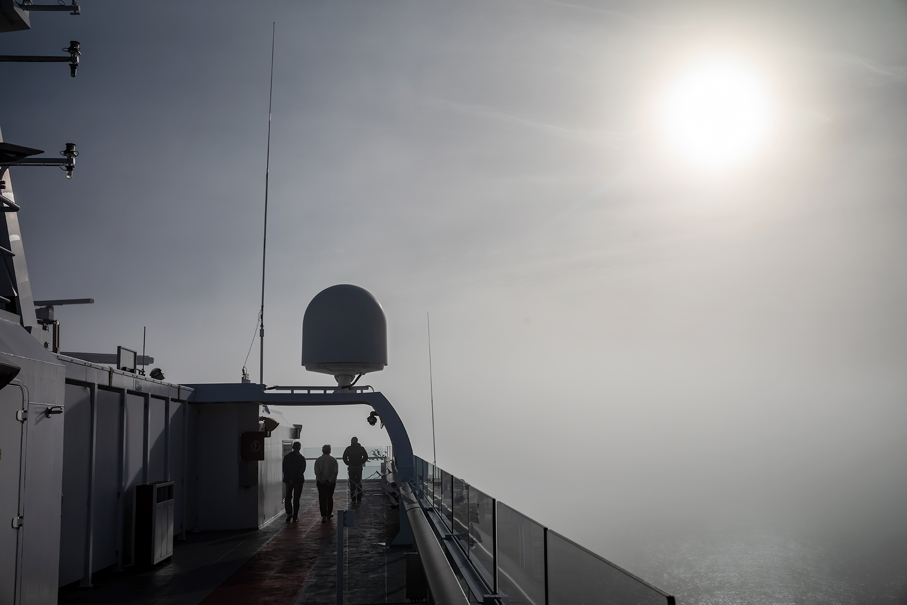 Kurzer Nachtrag allgemein: Franz könnte ein Gewerbe anmelden als Bord-Porträtfotograf. Er wurde mehrmals täglich von Passagieren gebeten vor diesem oder jenem Hintergrund ein Foto mit deren Handy zu machen. Vielleicht könnten wir in Zukunft damit wenigstens die Hälfte einer Reise finanzieren 😂.