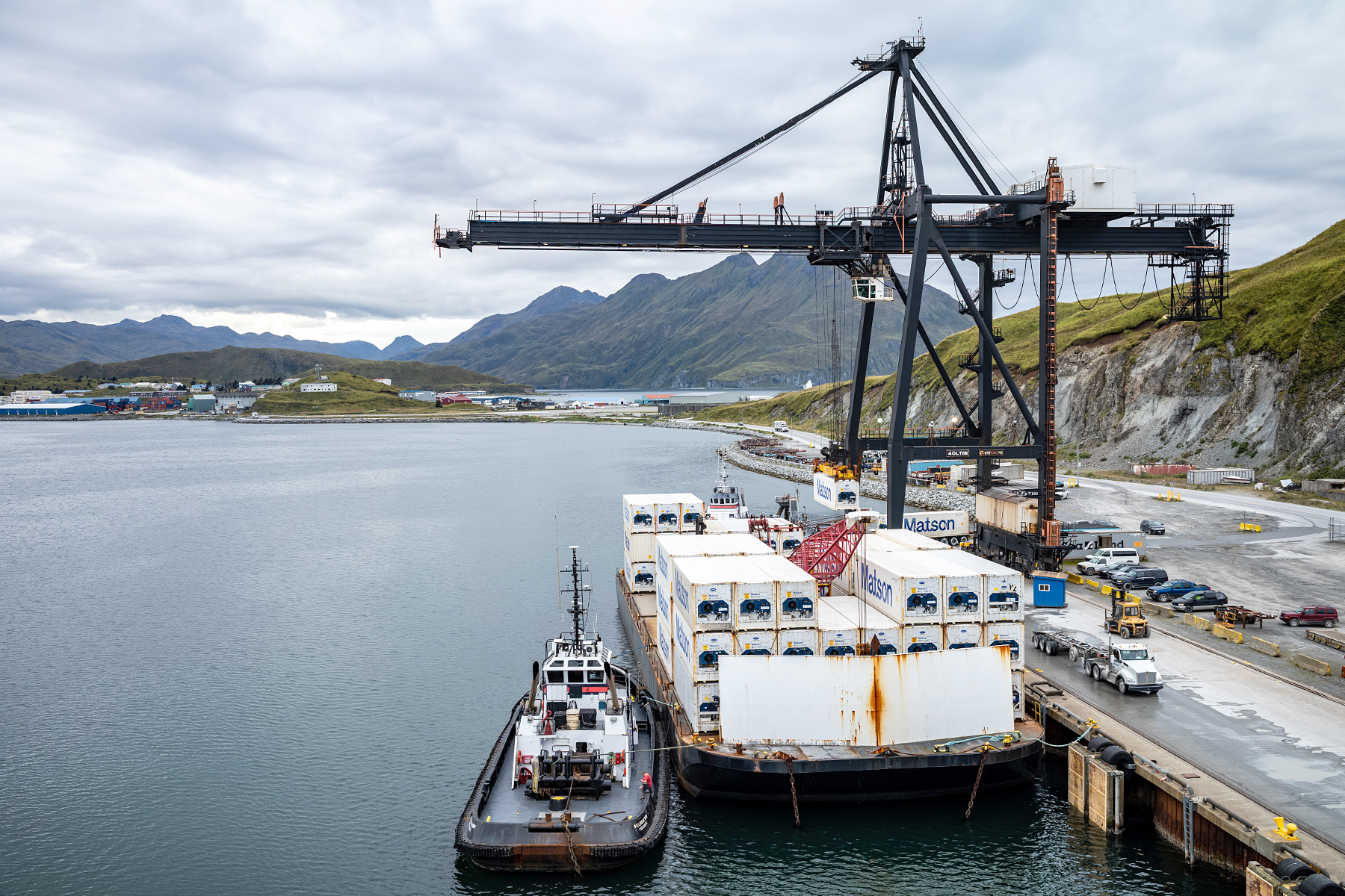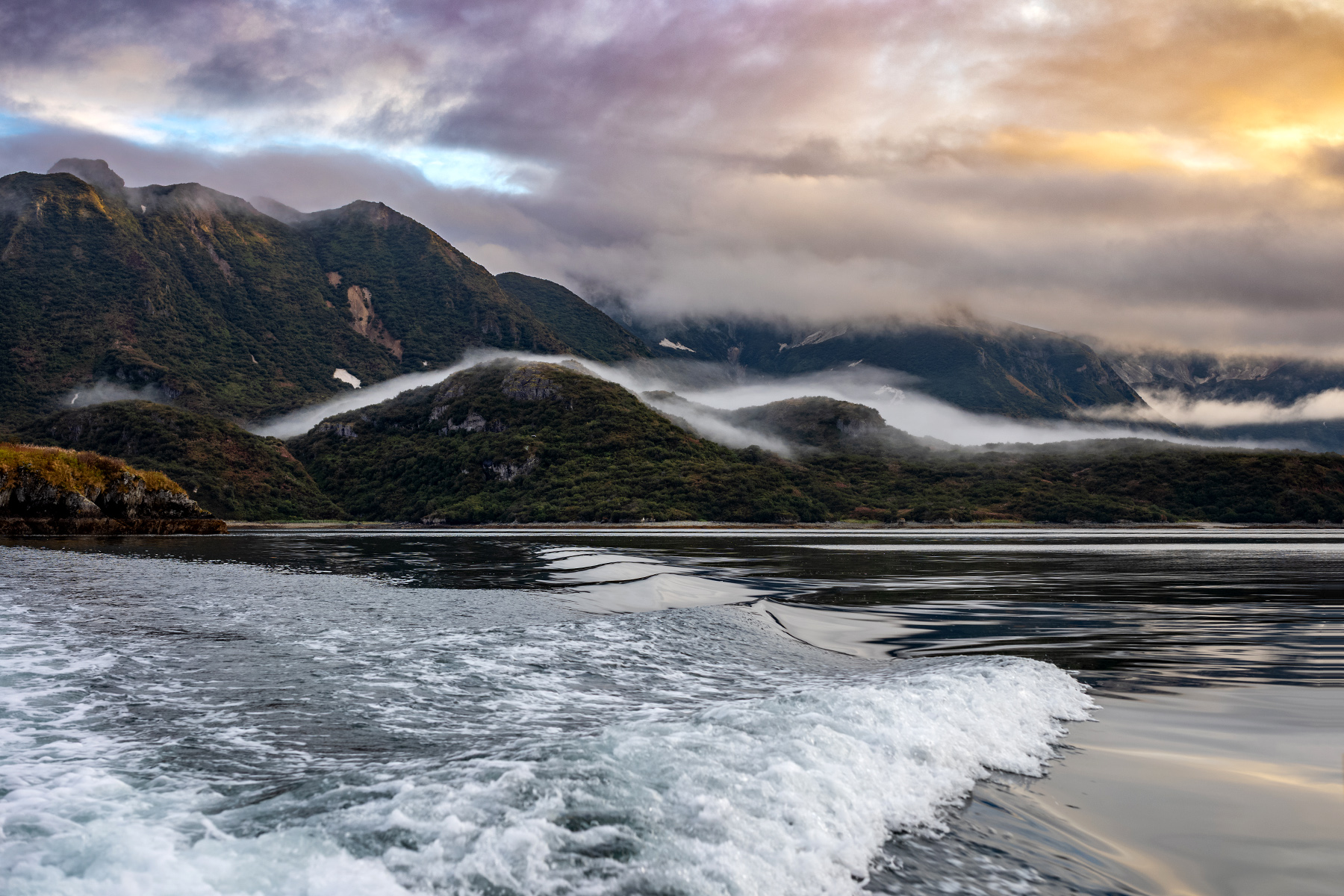 Auf dem Weg nach Dutch Harbor auf Unalaska Island, vorbei an Unimak Island