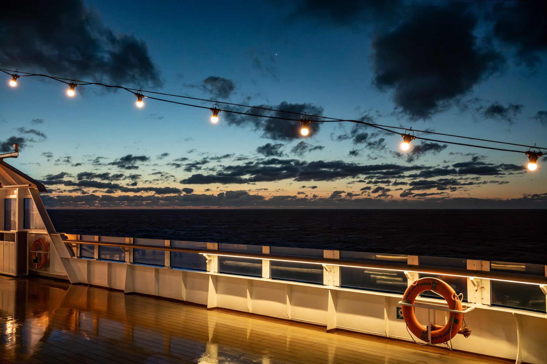 Zweiter Nachtrag: vor ein paar Minuten wurden wir aufgeschreckt – es ist immerhin schon nach 21:00 Uhr - dass es Steuerboard Buckelwale gibt. Also in die Schuhe, in die Jacken, unter die Hauben und auf Deck 10. Ich habe keine Wale gesehen nur viel Fluggetier, das uns begleitet. Und so ist halt immer was los auf hoher See.